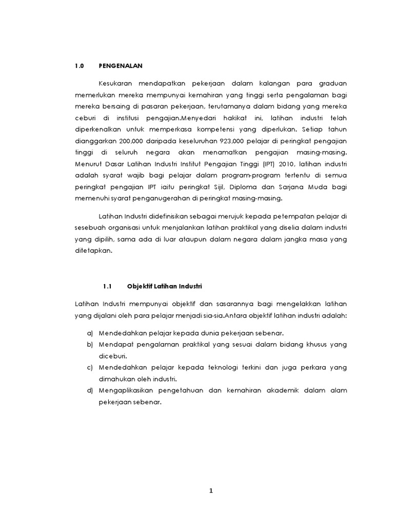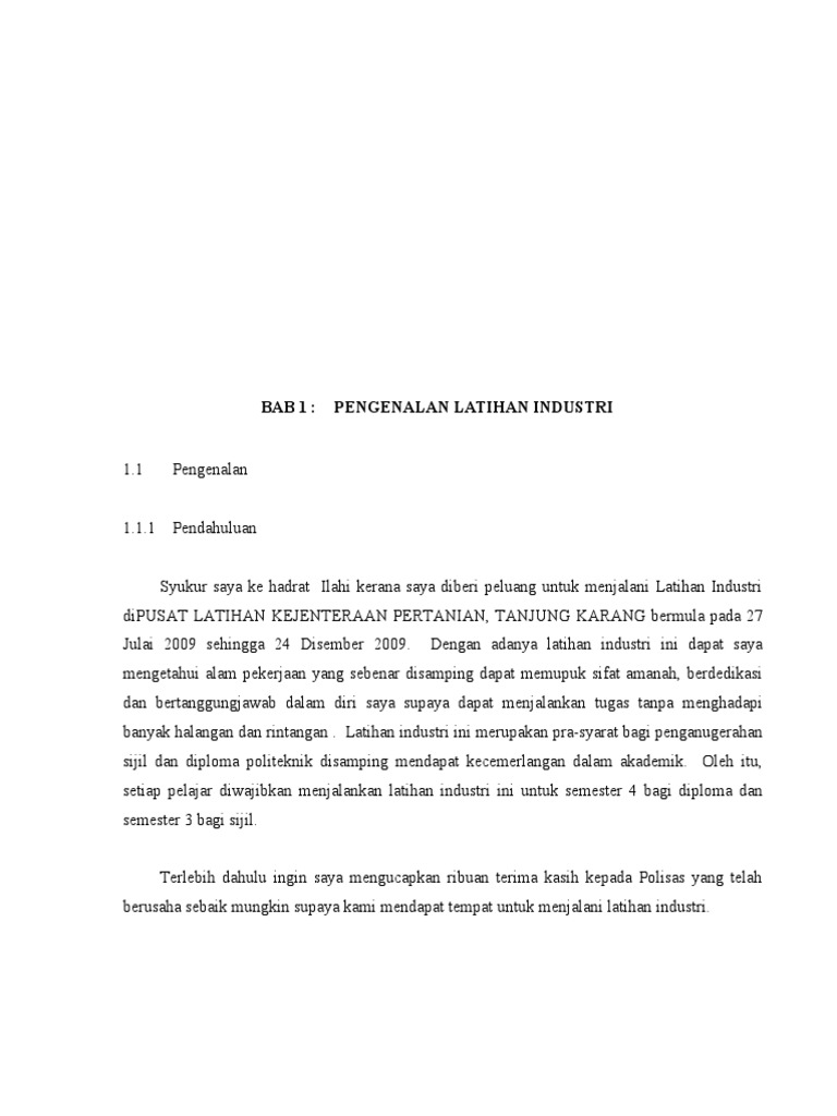 1 bab 1 pengenalan 11 pendahuluan latihan industri merupakan sebahagian daripada kursus wajib yang perlu. Terima kasih atas eluang yang diberikan untuk sya kongsikan contoh latihan ini bab pengenalan pengenalan latihan industri latihan industri ini adalah satu.
